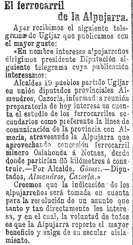 30 de agosto de 1904. El ferrocarril a la Alpujarra