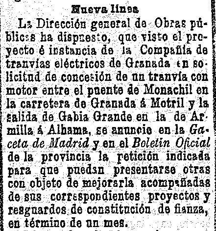 4 de mayo de 1906. Proyecto de Tranvía a Armilla