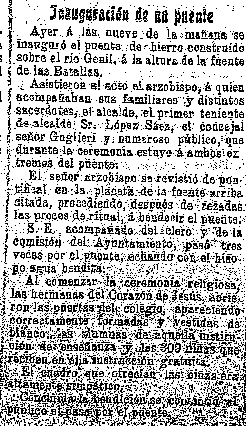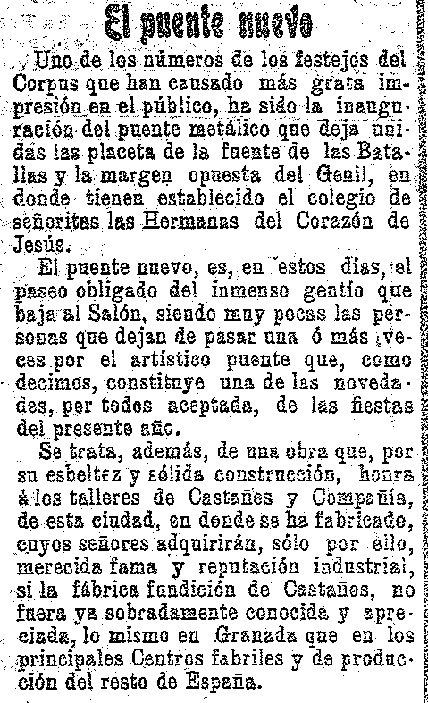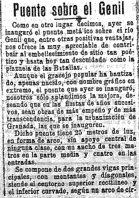 12 de junio de 1909. Se inaugura el puente metálico sobre el río Genil