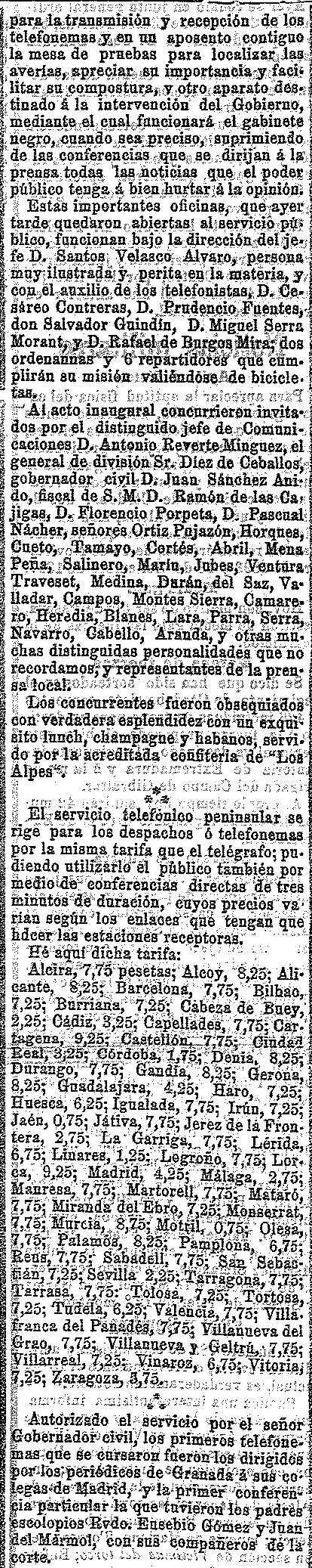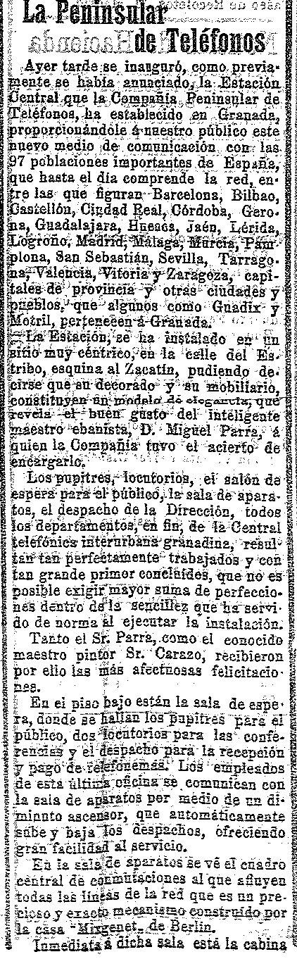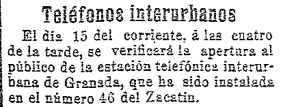 13 de abril de 1911. Teléfonos interurbanos en Granada