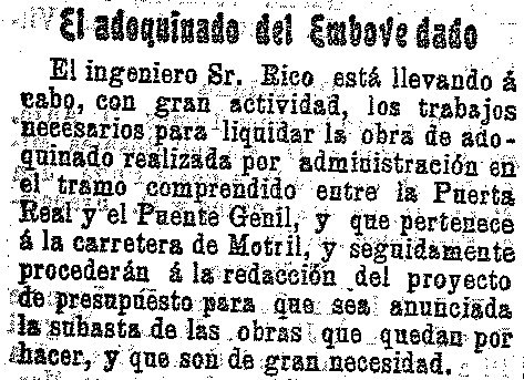 22 de mayo de 1909. El adoquinado del Embovedado de Puerta Real al Genil