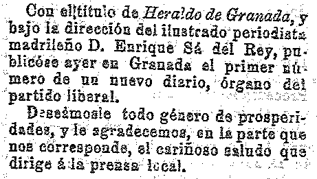 6 de octubre de 1911. Sale el periódico El Heraldo de Granada de tendencia liberal