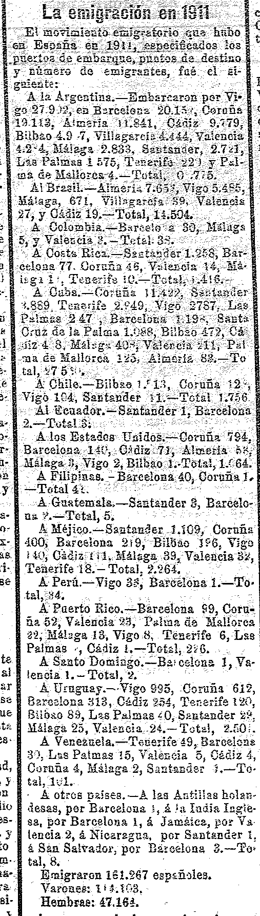 14 de agosto de 1912. Emigración española a países americanos en 1911