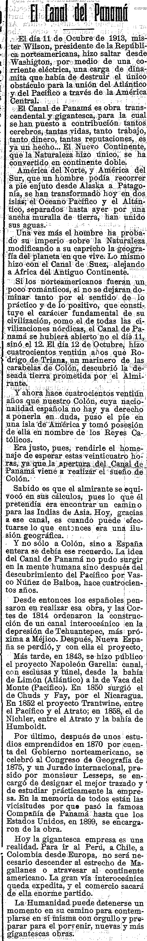 20 de octubre de 1913. En octubre de 1913 se abre el Canal de Panamá