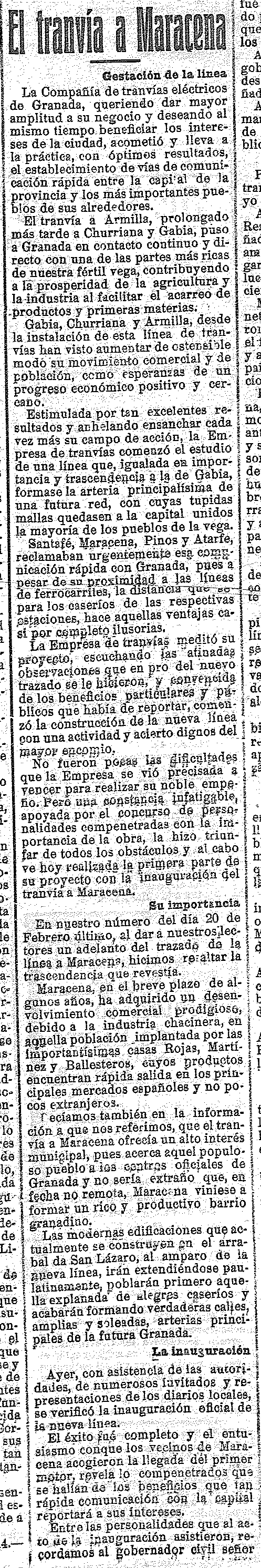 22 de Marzo de 1914. Prueba oficial del Tranvía de Maracena