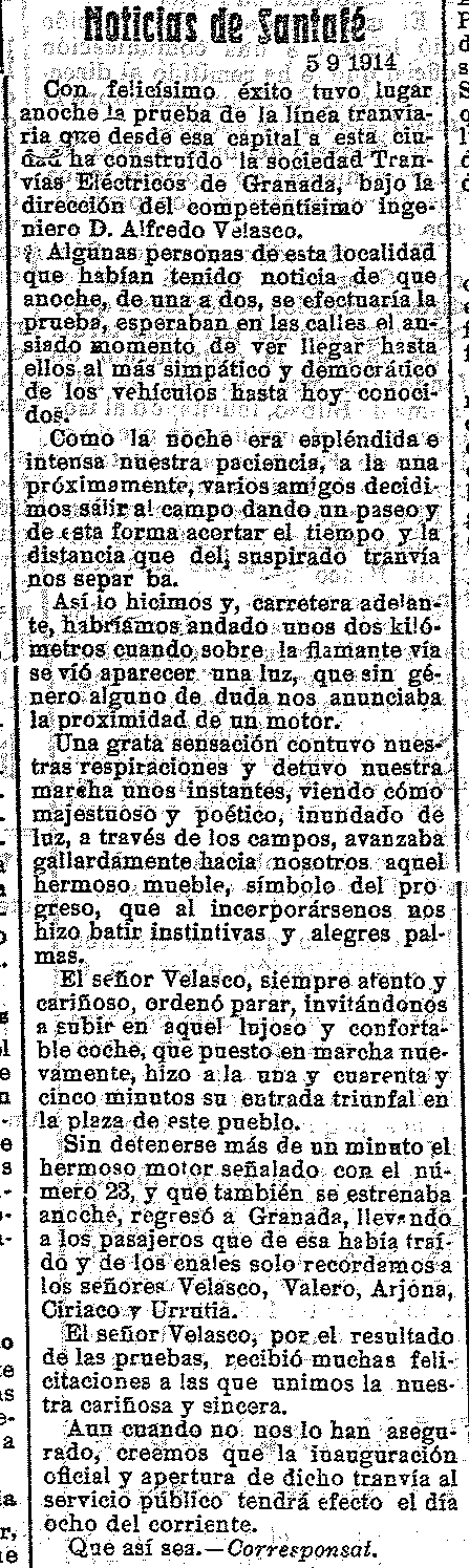 20 de septiembre de 1914. Se inaugura el tranvía de Santa Fe
