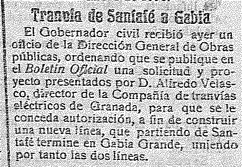 23 de noviembre de 1916. Proyecto de tranvía de Santafé a Gabia