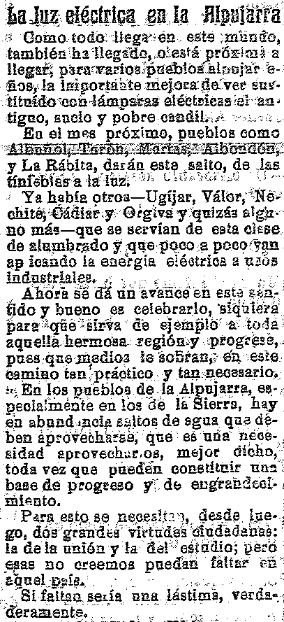 31 de agosto de 1915. Luz eléctrica en la Alpujarra