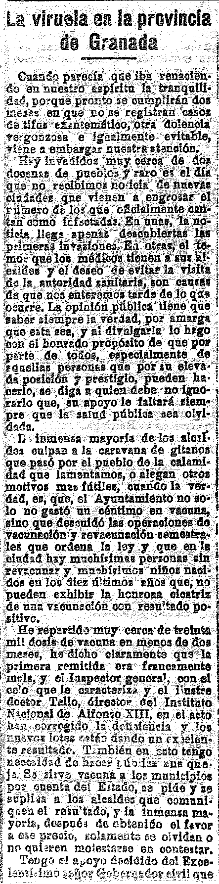 14 de noviembre de 1920. La viruela en la provincia