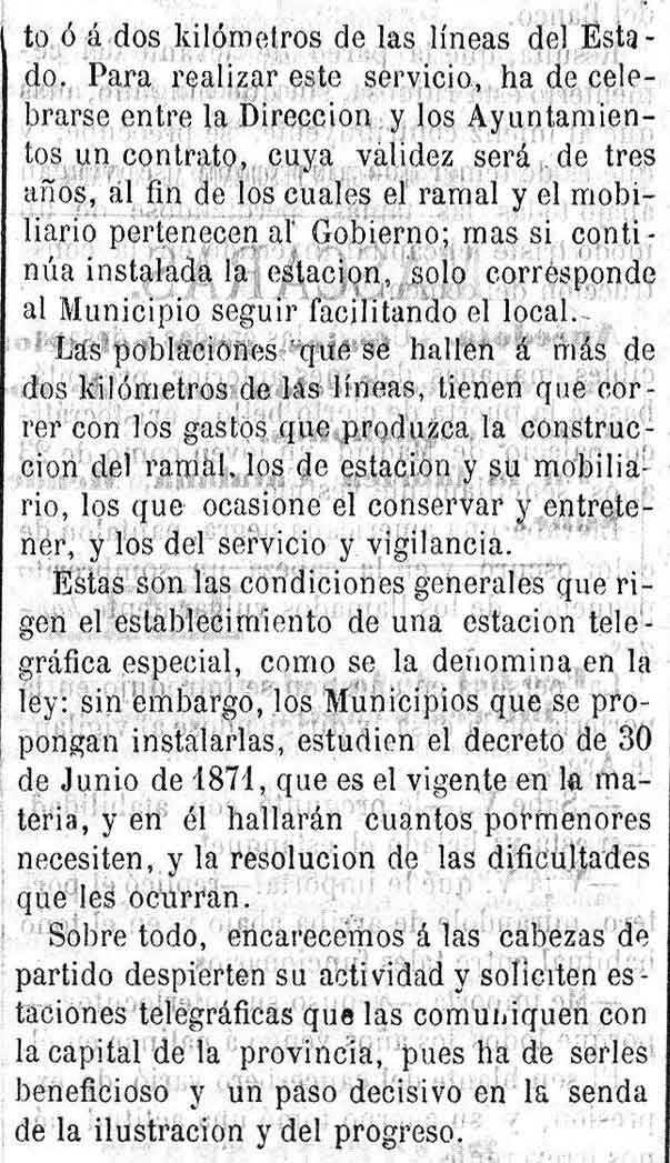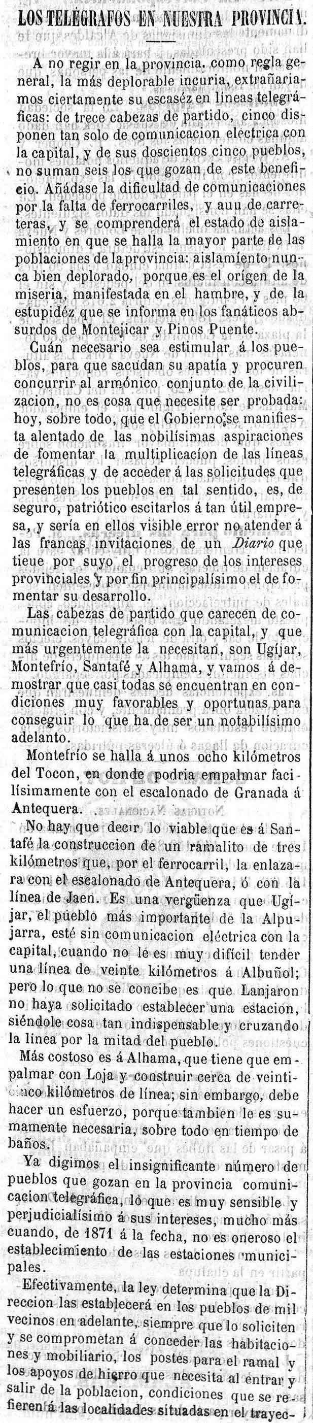 15 de febrero de 1881. Situación de los telégrafos de la provincia de Granada