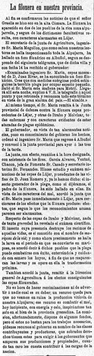 17 de junio de 1883. La filoxera en la provincia de Granada