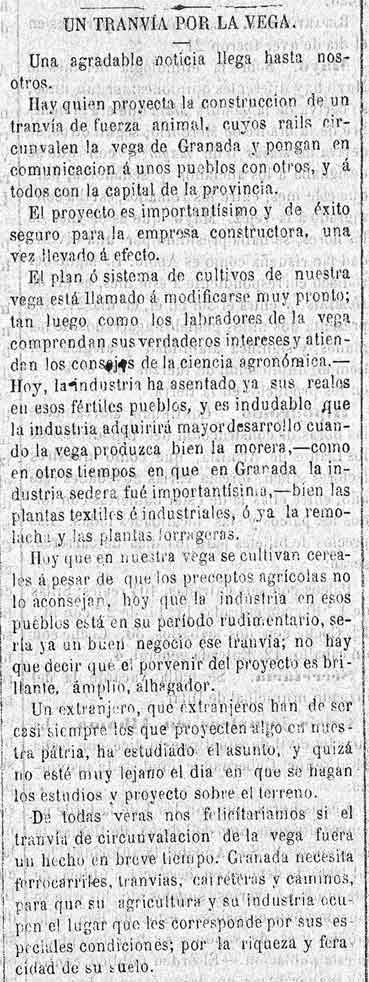 26 de mayo de 1882. Un tranvía de tracción animal para la Vega de Granada