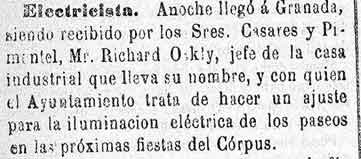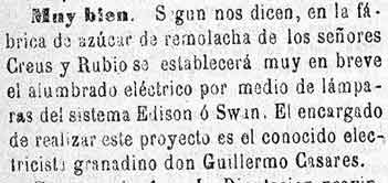 28 de marzo de 1884. Inicio de luz eléctrica. En el Corpus de este año se pondrá luz eléctrica