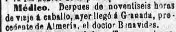 3 de agosto de 1885. El Doctor Benavides viene desde Almería a caballo para atender la epidemia de cólera que ha estallado en Granada. tarda 96 horas