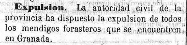 3 de febrero de 1881. El gobernador civil da la orden de expulsar a todos los mendigos forasteros que se encuentren en Granada