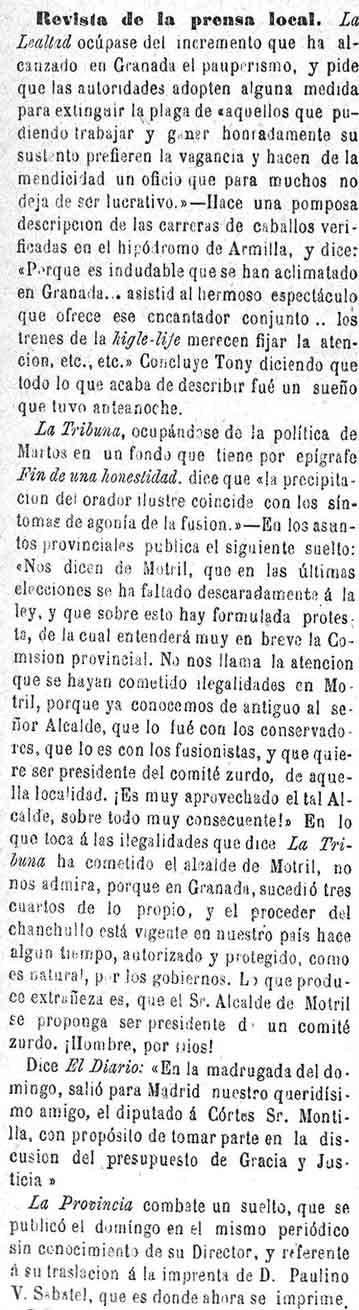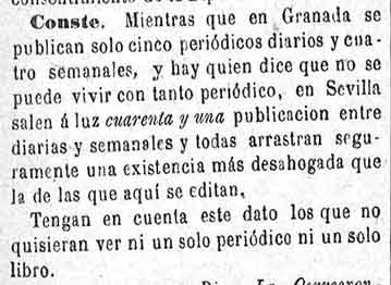 3 de junio de 1883. En Granada hay 5 periódicos diarios y cuatro semanales.