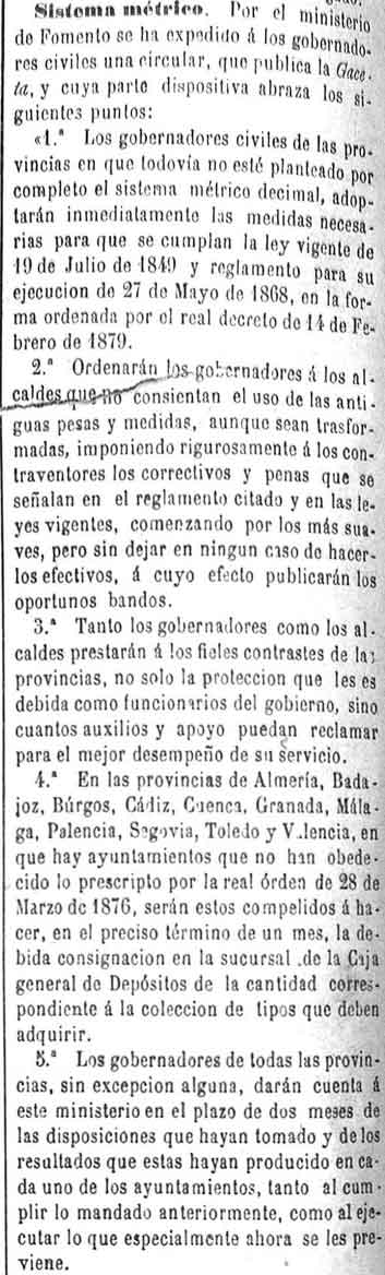 9 de febrero de 1883. Implantación del sistema métrico decimal en la provincia de Granada