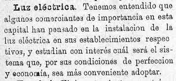 20 de febrero de 1886. Comercios de Granada están pensando en poner luz eléctrica