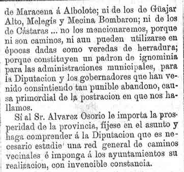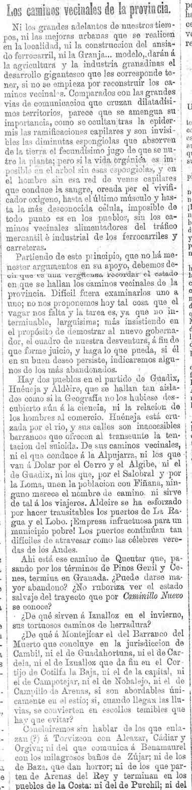 22 de agosto de 1886. Los caminos vecinales de la provincia de Granada