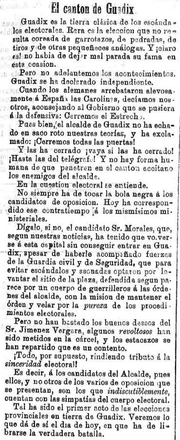 9 de septiembre de 1888. El cantón de Guadix