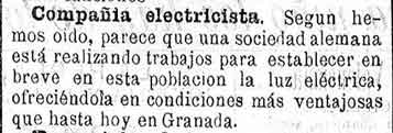 10 de julio de 1890. Compañía alemana para dar luz a Granada capital
