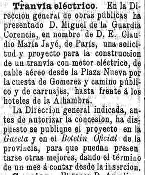 14 de diciembre de 1897. Proyecto de tranvía eléctrico en Granada