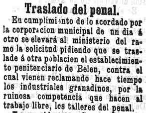 14 de julio de 1899. Se solicita trasladar la Cárcel de Belén de Granada