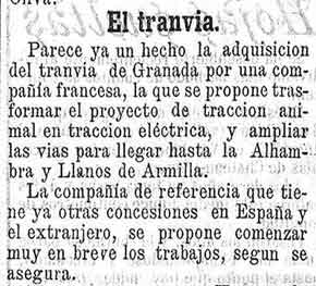 15 de abril de 1897. Situación del proyecto del tranvía en Granada