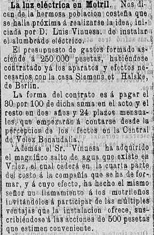 16 de junio de 1896. Cercana la luz eléctrica en Motril