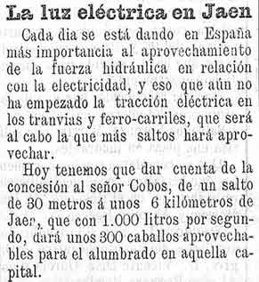 16 de marzo de 1897. Luz eléctrica en Jaén
