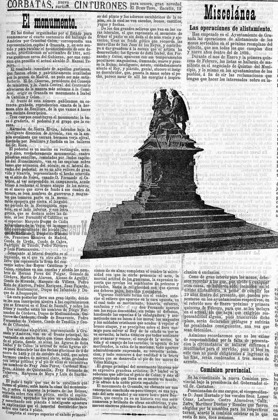 16 de noviembre de 1892. Inauguración del monumento a Colón en la celebración del cuarto centenario del descubrimiento de América