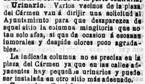 17 de agosto de 1892. El urinario de la plaza del Carmen de Granada
