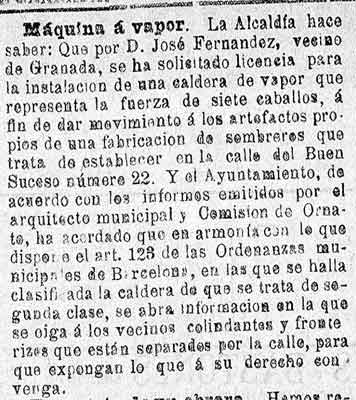 20 de mayo de 1891. Maquina de vapor en Granada para la fabricación de sombreros