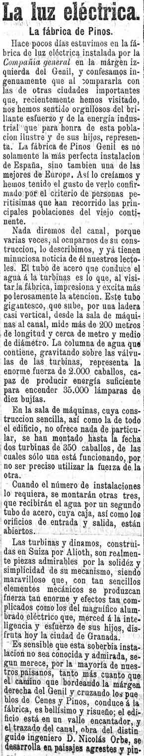 24 de septiembre de 1894. La La Fábrica de electricidad de Pinos Genil