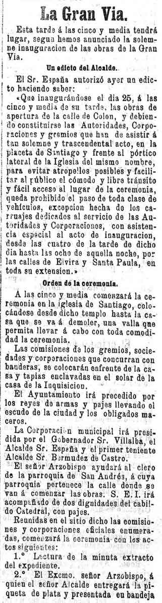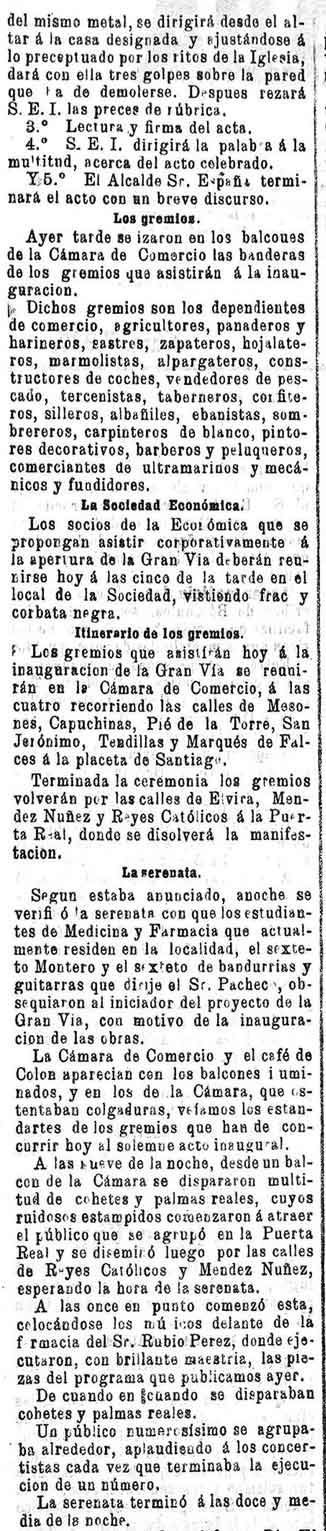 25 de agosto de 1895. Se inauguran las obras de la Gran Vía de Granada.
