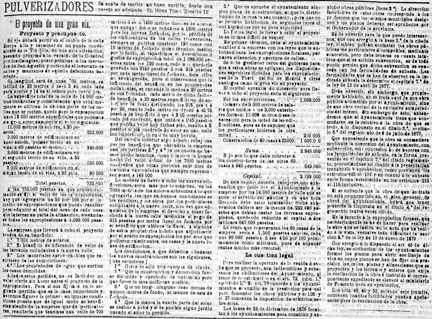 25 de noviembre de 1890. Proyecto de una Gran Vía en Granada