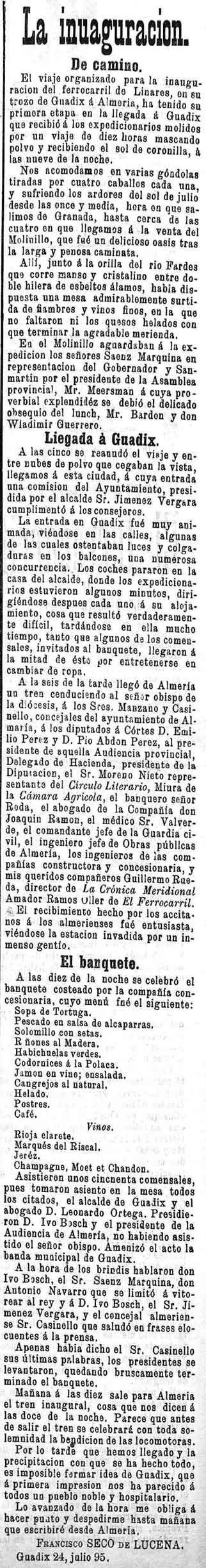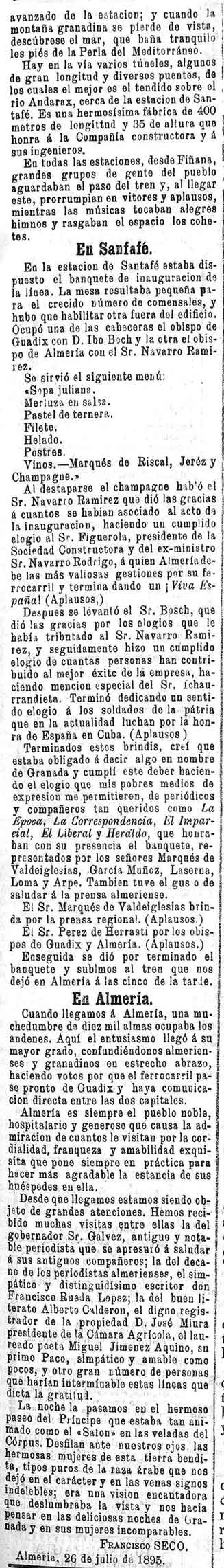 26 de julio de 1895. Se inaugura el ferrocarril de Linares en la línea Guadix a Almería