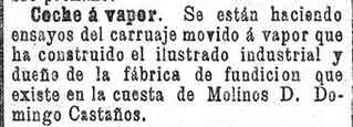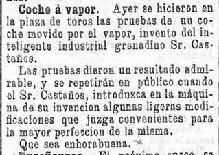 29 de septiembre de 1895. Ensayo de coche de vapor en Granada