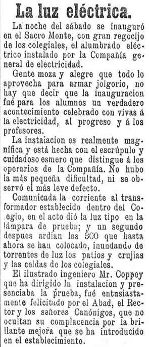 2 de noviembre de 1987. Se inaugura la luz en el Sacro Monte