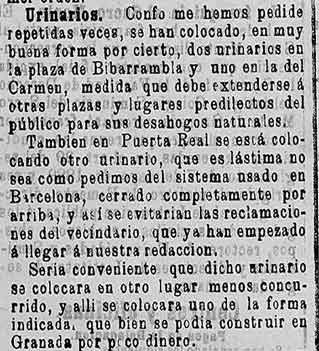 3 de mayo de 1896. Urinarios en Granada capital
