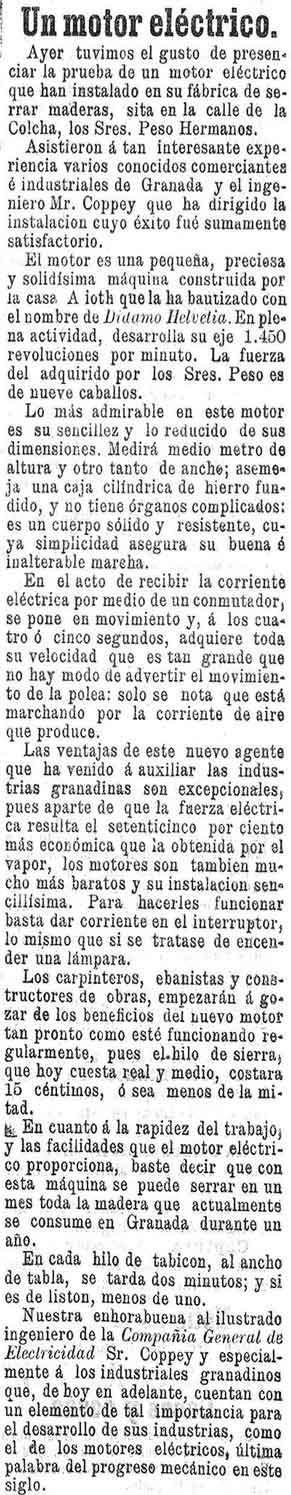 7 de noviembre de 1987. Motor eléctrico en Granada en una fábrica de serrar maderas