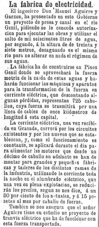 9 de diciembre de 1894. Proyecto de fábrica de electricidad en el río Genil