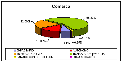 Sobre la ocupación en la comarca se registra un bajo promedio, pues apenas el 63 % de la población activa trabajaba, cifra que, al tratarse de una media, enmascara realidades municipales muy preocupantes.