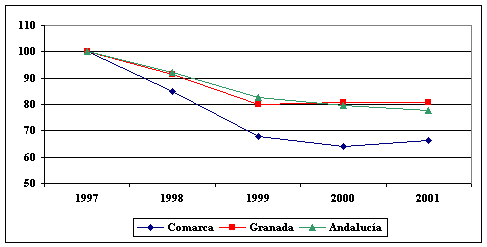El hecho más trascendental que ponen en evidencia los datos es la notable contracción del paro, apreciándose de 1997 a 2001 un descenso de más del 33,55 % en el conjunto. A este descenso, además de la coyuntura económica favorable han contribuido también las políticas llevadas a cabo desde las distintas esferas de gobierno, aunque habría que profundizar sobre la calidad y las condiciones del empleo generado, que no siempre son las más idóneas, dado lo efímero y precario de muchos de los contratos de trabajo.
