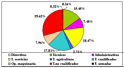 Según el Censo de 1991 que es la información más reciente y fidedigna con la que contamos, aunque es previsible que la ocupación en la zona no haya variado mucho.