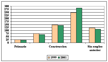 Sobre la actividad económica hay que señalar que en 2001, el 82,22 % de los parados inscritos en el INEM ya había trabajado con anterioridad, mientras el 17,78 % restante demandaba su primer empleo.
