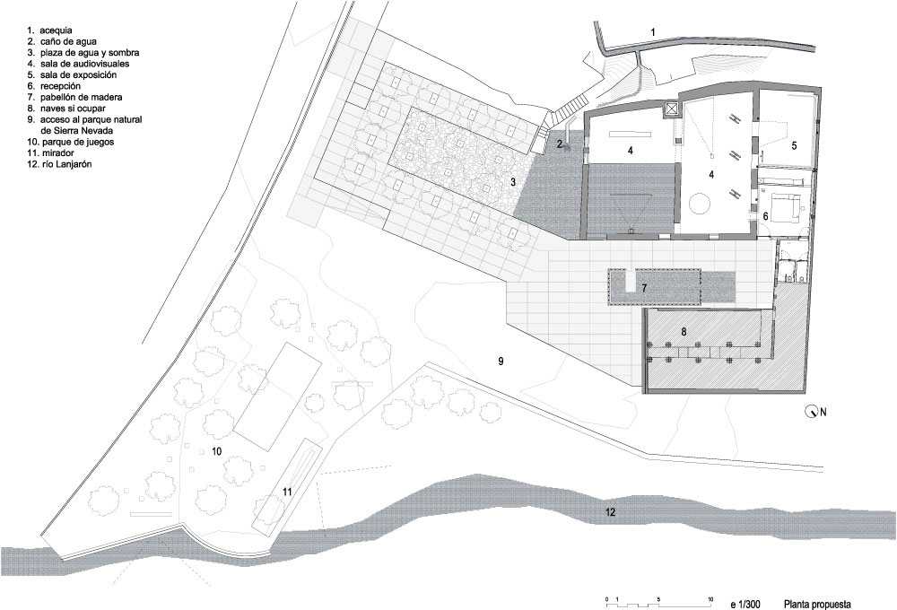 El proyecto del museo se inició con la búsqueda de un lugar que pudiera favorecer la presencia del agua en unas condiciones naturales. El espacio elegido se encuentra situado en el acceso al Parque natural de Sierra Nevada, junto al río Lanjarón y una acequia de riego que bordea unas antiguas construcciones utilizadas como matadero municipal.