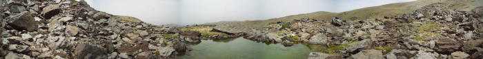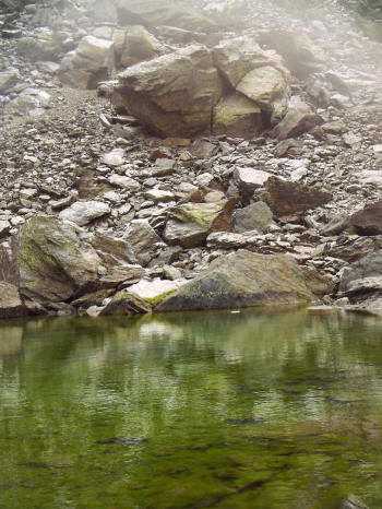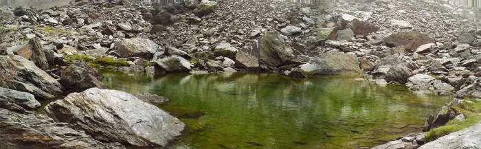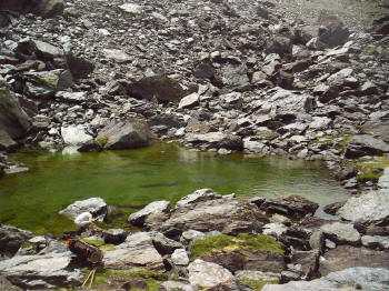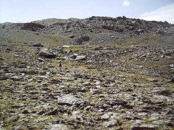 El valle que se extiende por una longitud de unos dos kilómetros, comprende el área de un antiguo glaciar y tiene forma de U .