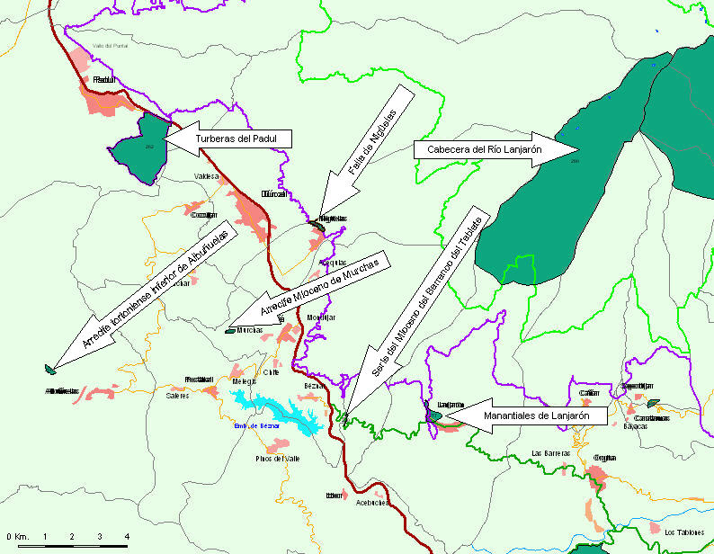 Mapa de los elementos de geodiversidad en el Valle de Lecrín