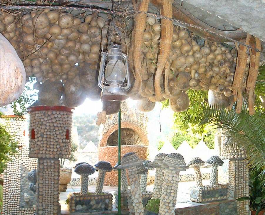 Es una casa particular, adornada, por la ambición y destreza de su dueño, de innumerables conchas, calabazas y otras muchas destrezas manipulativas.